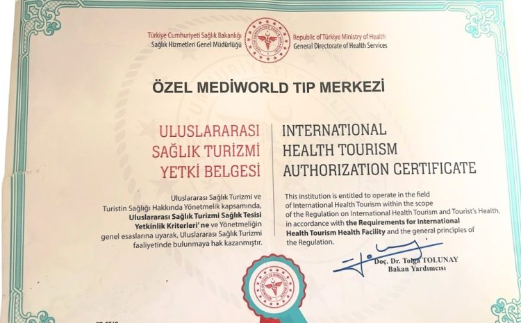 Mediworld Tıp Merkezi Uluslararası Sağlık Turizmi Yetki Belgesi’ne sahiptir.
